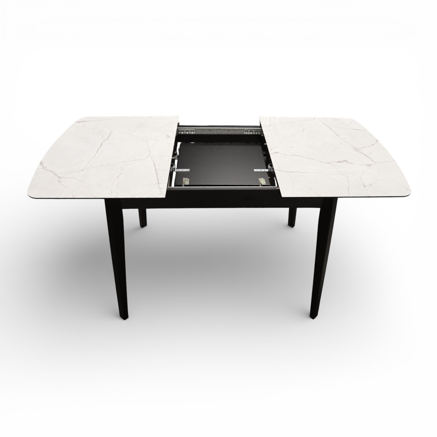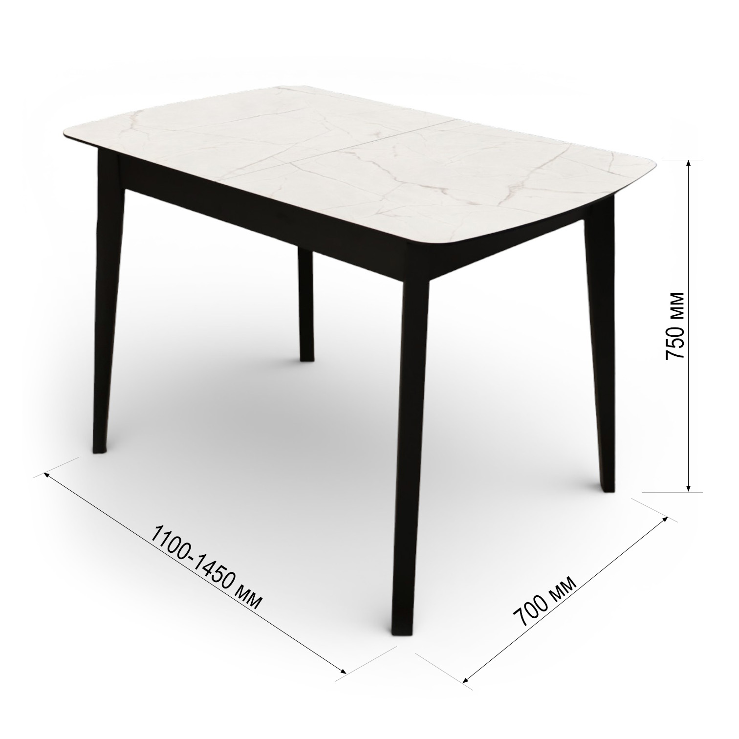 —Стол Ньюман МДФ/пластик, 1100 (1450)*700 Мрамор Монтекатини, опора ZD08 дер/черный