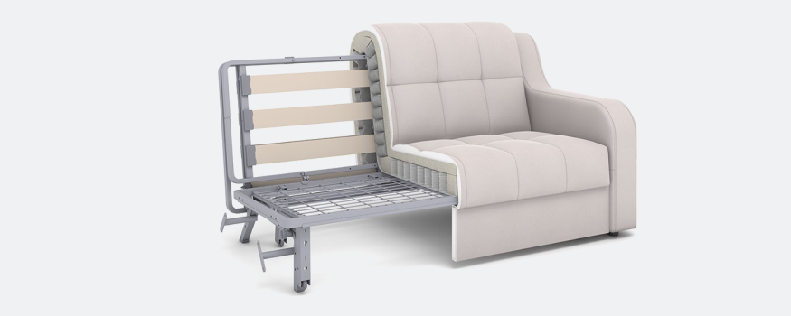 В основе дивана — надежный механизм трансформации «аккордеон». Простое движение превращает его в просторное спальное место с ровной и высокой поверхностью (ширина от 84 до 184 см), что гарантирует комфортный отдых без перепадов высоты.