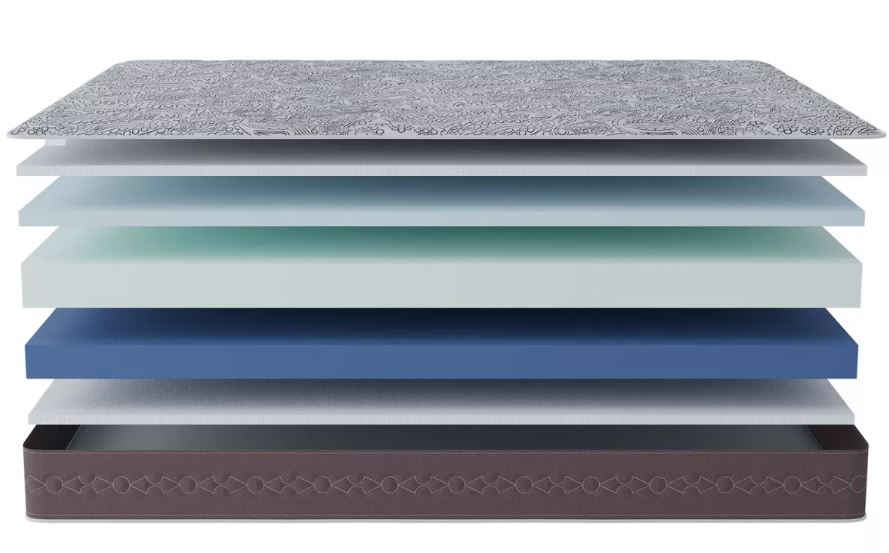 Уникальная «сэндвич»-конструкция из трёх слоёв премиальной пены дарит непревзойдённый комфорт и ортопедическую поддержку.